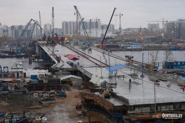 Строительство Большого Смоленского моста опережает график. Как только завершится период навигации по Неве, у мостостроителей будет время до начала следующего сезона, чтобы установить разводной пролет.