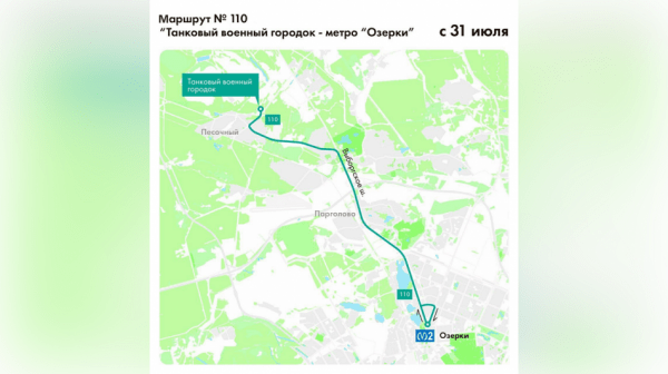 Маршрут не только поменяет номер, но и будет продлен до Танкового военного городка. Автобус поедет от станции метро «Озерки» по Выборгскому шоссе, Песочному шоссе через поселок Песочный, далее по Ленинградской и Советской улицам и по дороге в Танковый военный городок.