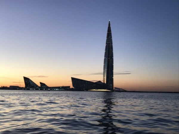 В ночь на 25 мая башня Лахта центра подсветилась в сине-бело-голубых цветах в честь столетия петербургского футбольного клуба «Зенит».
