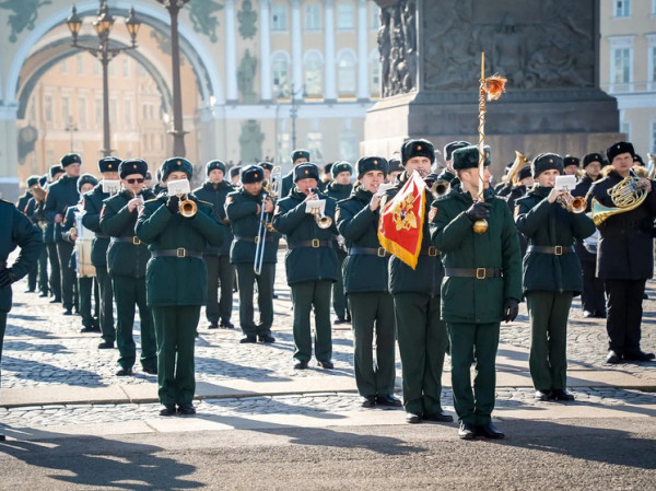На Дворцовой площади состоялась первая репетиция сводного военного оркестра Санкт-Петербургского гарнизона к параду в честь 81-й годовщины Победы в Великой Отечественной войне, сообщили в пресс-службе ведомства.
