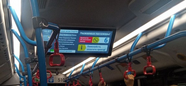 На монитор водителю выводится число вошедших. А на табло в салоне указывается количество людей, которые ещё не заплатили за поездку. Данные также передаются диспетчерам, чтобы вовремя направить на рейс контролёров.