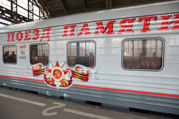 Ранее мы сообщали о прибытии «Поезда победы на Витебский вокзал, где петербуржцы могли посетить вагон «мирное время», «концлагерь» или «банно-прачечные поезда и блокада».