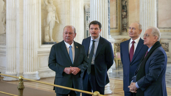 Президент РФ Владимир Путин и верховный правитель Малайзии Султан Ибрагим во время посещения Государственного Эрмитажа в Санкт-Петербурге
