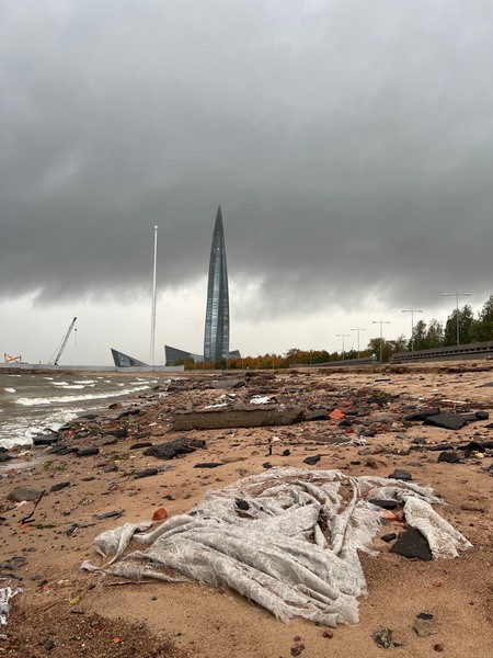 Так, пляж Финского залива в районе парка 300-летия превратился в свалку строительного мусора. Волны «выплюнули» и вымыли куски асфальта, кирпичи, арматуру и мешки.