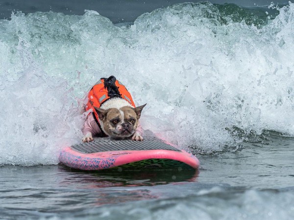 В калифорнийском городе Пасифика прошёл традиционный чемпионат по собачьему сёрфингу. Поймать волну приехали 20 четвероногих спортсменов вместе с владельцами. Полюбоваться отважными животными пришли тысячи зрителей, сообщает ABC News.