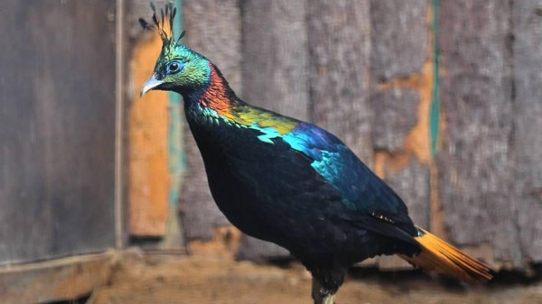 «Самцы окрашены очень ярко и привлекательно. Их оперение играет зеленым, медным и фиолетовым металликом, на голове есть выраженный хохолок. Самка меньше по размерам и отличается по цветовой гамме. Ее скромное, буро-серое оперение позволяет оставаться незаметной для хищников во время насиживания кладки яиц», — отмечается в сообщении.