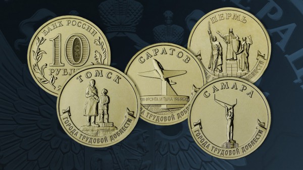 Памятные 10-рублевые монеты выпустил Банк России. Они посвящены четырем российским городам трудовой доблести – Саратову, Самаре, Перми и Томску.
