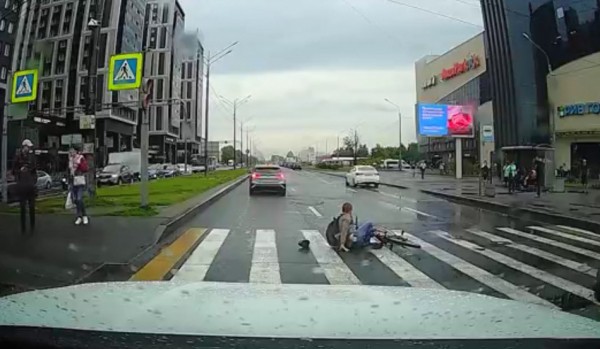 Женщина за рулем Kia поворачивала налево с Бухарестской на Салова, когда сбила велосипедиста. Мужчина на двухколесном транспорте не спешился и проехал по пешеходному переходу на красный сигнал светофора.